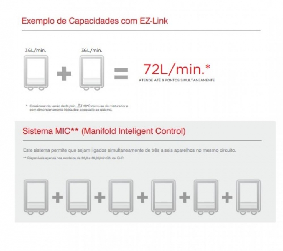 • Maior economia, pois o sistema só ligará o segundo aquecedor, se a demanda for necessária.